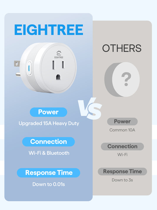 EIGHTREE 15A Smart Plug, Wi-Fi & Bluetooth Smart Outlet for High-Power Home Appliances, Works with Alexa & Google Home, Easy Setup, Timer & Remote Control, FCC & ETL Certified, 2.4GHz Wi-Fi Only