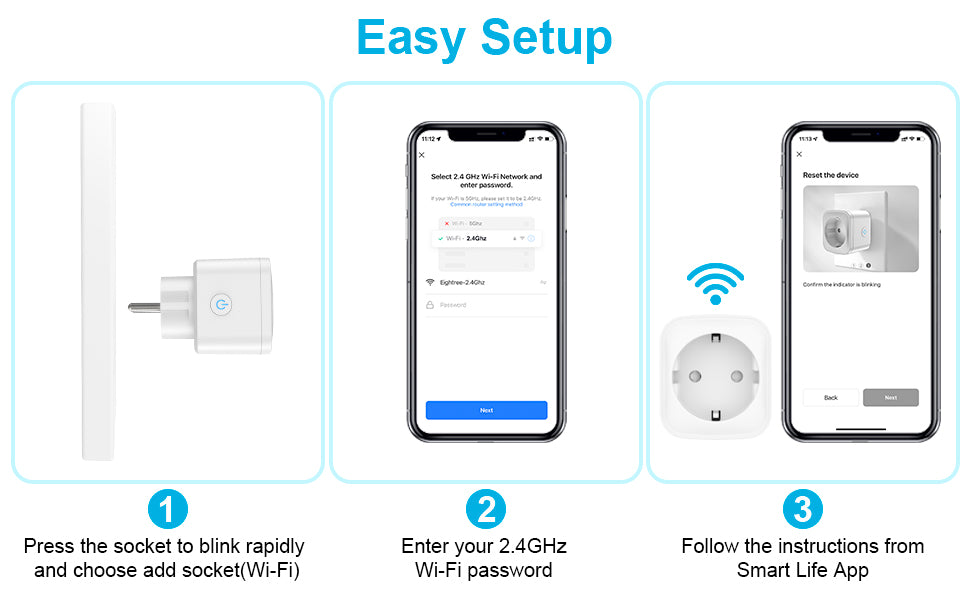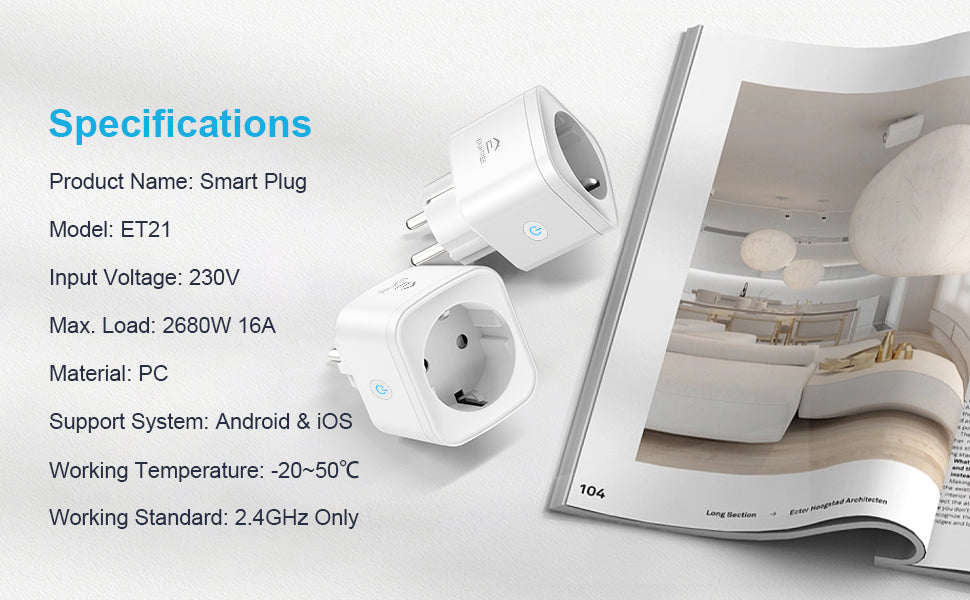 - Fernsteuerung: Es dauert nur zwei Minuten, um sich mit der Smart Life APP zu verbinden(Nur 2,4 GHz Wi-Fi). Sie können Ihre Haushaltsgeräte jederzeit und überall über die APP steuern und müssen sich keine Sorgen mehr machen, dass Sie vergessen, die Geräte auszuschalten, wenn Sie nicht zu Hause sind.
